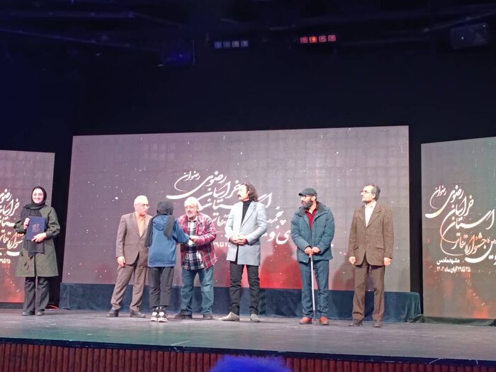بخش گریم: مهشید مرادی طراح گریم نمایش «فایو» از قوچان موفق به کسب جایزه رتبه برگزیده این بخش شد.